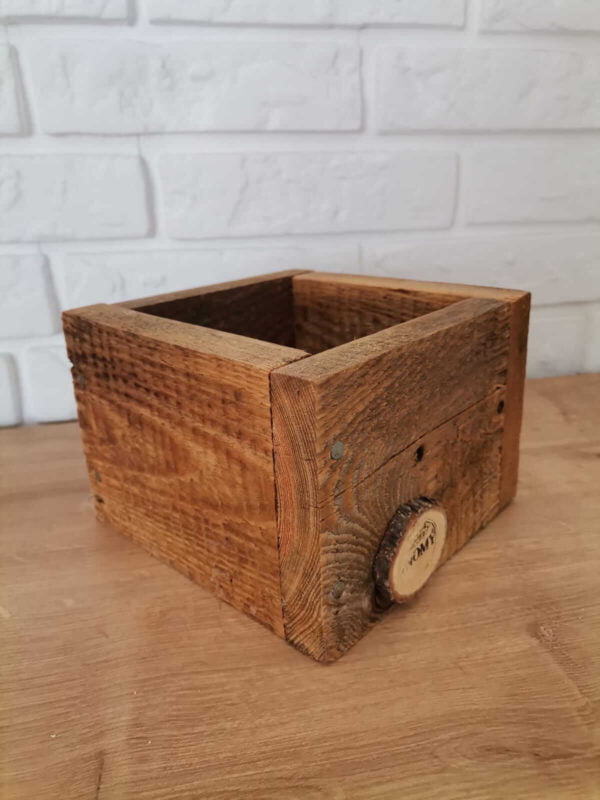 Drewniana skrzynka-osłonka na doniczkę. Idealna do dekoracji wnętrz i ogrodów, wprowadzająca naturalny urok do Twojego domu